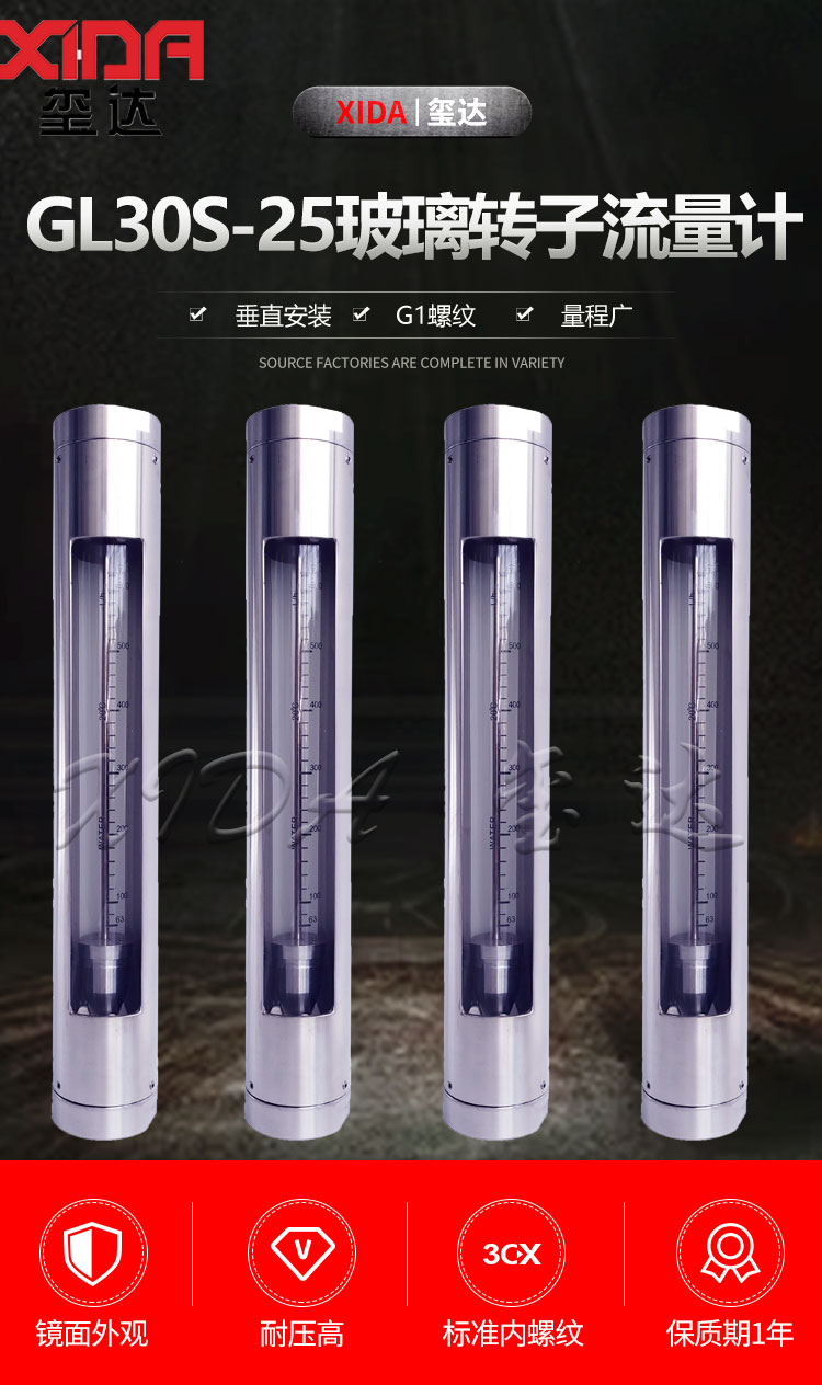 2. 特點:GL30S-25不銹鋼玻璃轉子流量計測量瞬間流量,可耐腐蝕,安裝方便,小巧安全,工作壓力可達1.0MPa。