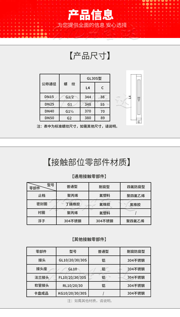 ①接受定制定做:其他螺紋尺寸(NPT1/2,G3/8,外螺紋等)